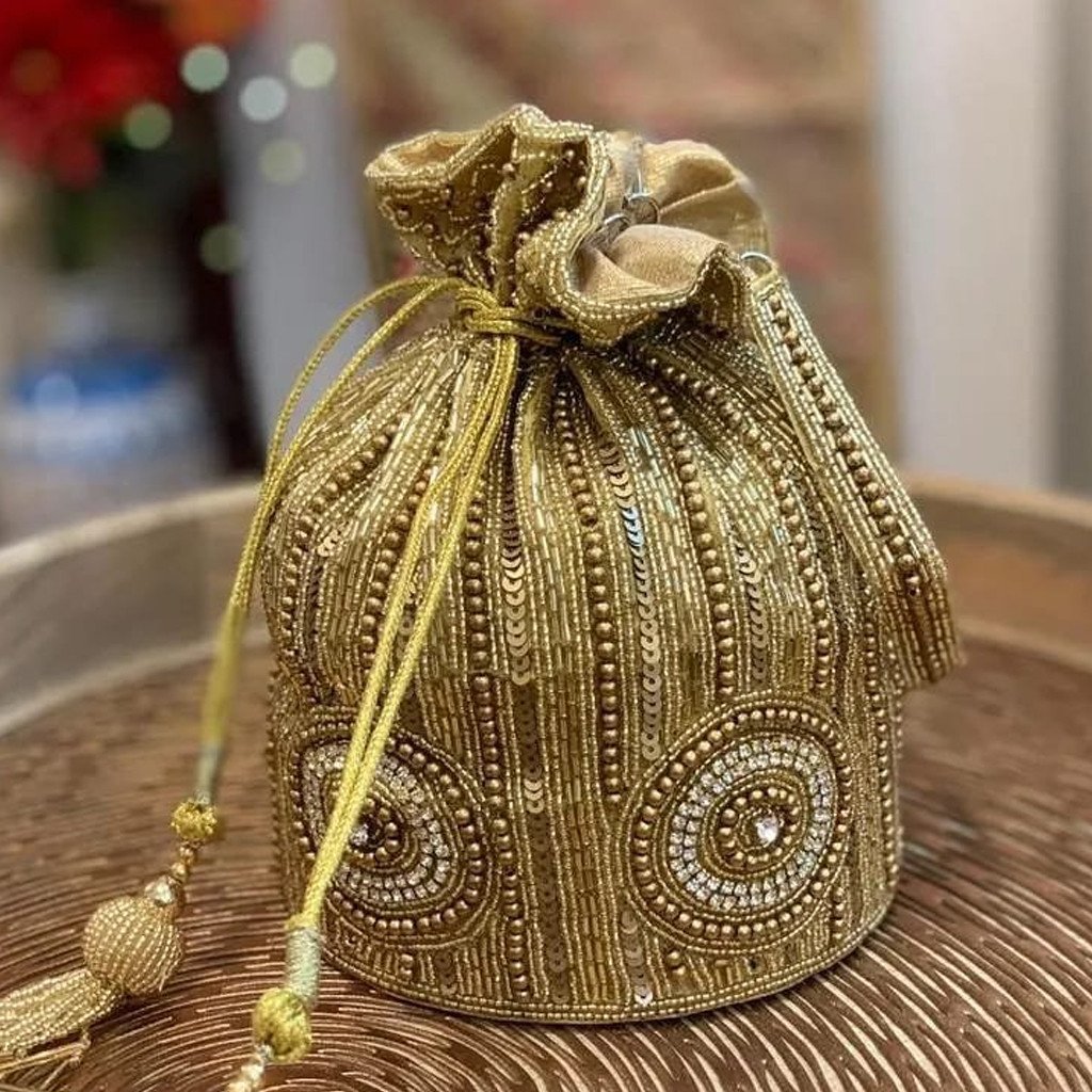 The fancy rope handle makes it easy to carry while adding a stylish twist to the design. Perfect for weddings, festivals, and special occasions, this potli bag is spacious enough for small essentials like keys, phone, or makeup.