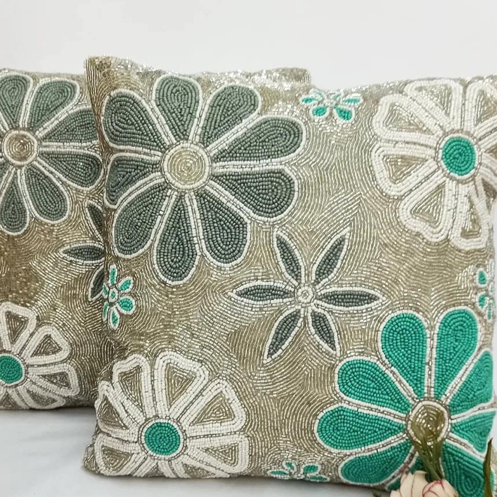 Made using premium-quality beads and durable poly dupion fabric, this 16x16 inch cushion cover showcases a perfect balance of elegance and durability. Every bead is securely hand-tied to ensure long-lasting beauty and intricate finish.