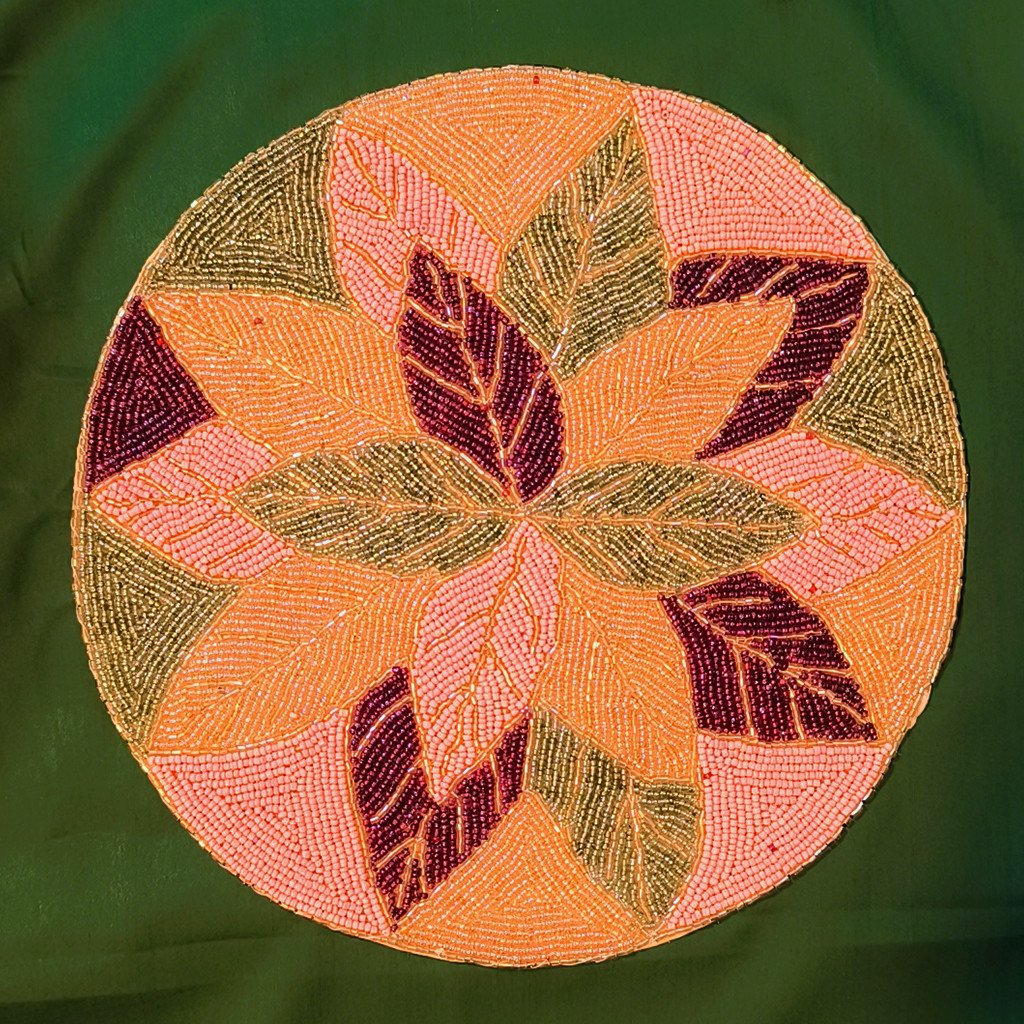 Multicolor Designer Leaf Shaped Beaded Table Mat